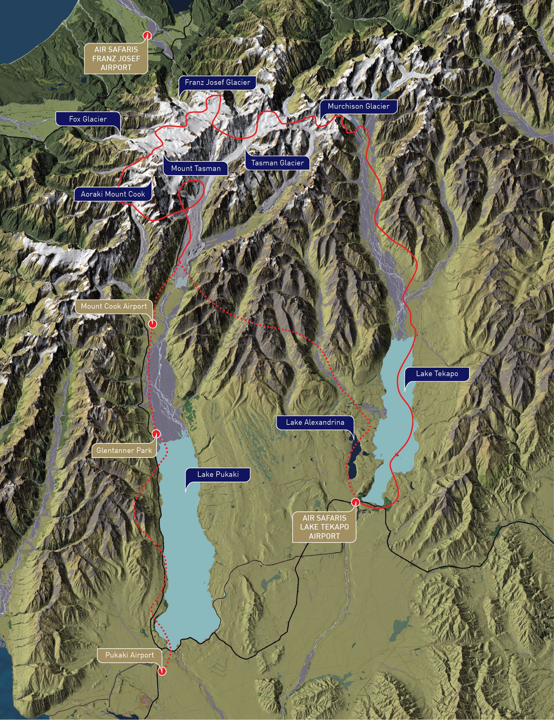 • Enjoy a spectacular 50 minute scenic flight over New Zealand’s Southern Alps, including views of Aoraki/Mount Cook, the highest peak in New Zealand.