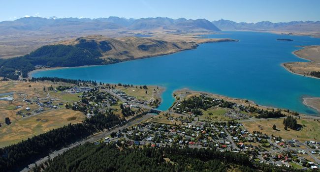Nestled on the southern shoreline of Lake Tekapo, the village is home to 350 permanent residents. It is dominated to the west by Mt John. Lake Tekapo village is the home of star gazing in New Zealand. Having one of the clearest night skies in the world it is an “International Dark Sky Reserve.” The village hosts thousands of visitors from all over the world. The “Church of the Good Shepherd” on the lakefront is the most photographed place in the country.