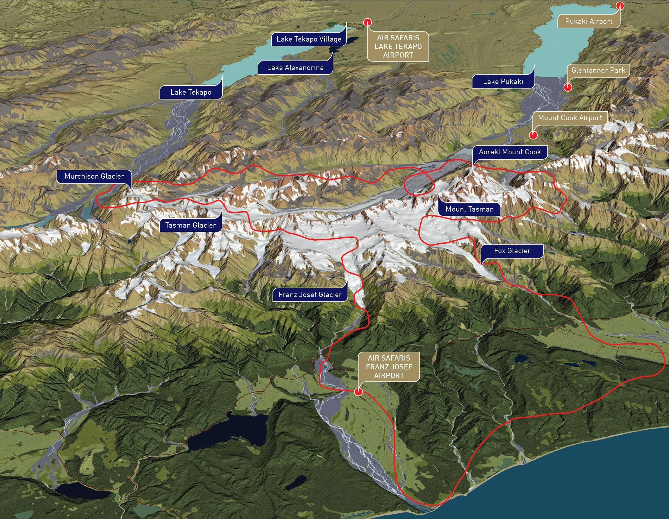 Situated in the heart of glacier country. Air Safaris owns and operates an airfield approximately 8km west of the Franz Josef township and a bookings and information office in the Franz Josef town centre.