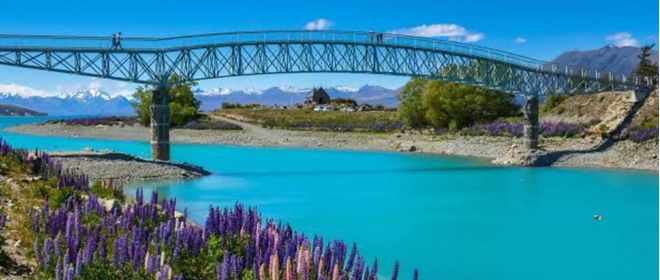 • Beautiful turquoise glacial lakes, golden tussock lands, and the braided river systems of the Mackenzie basin